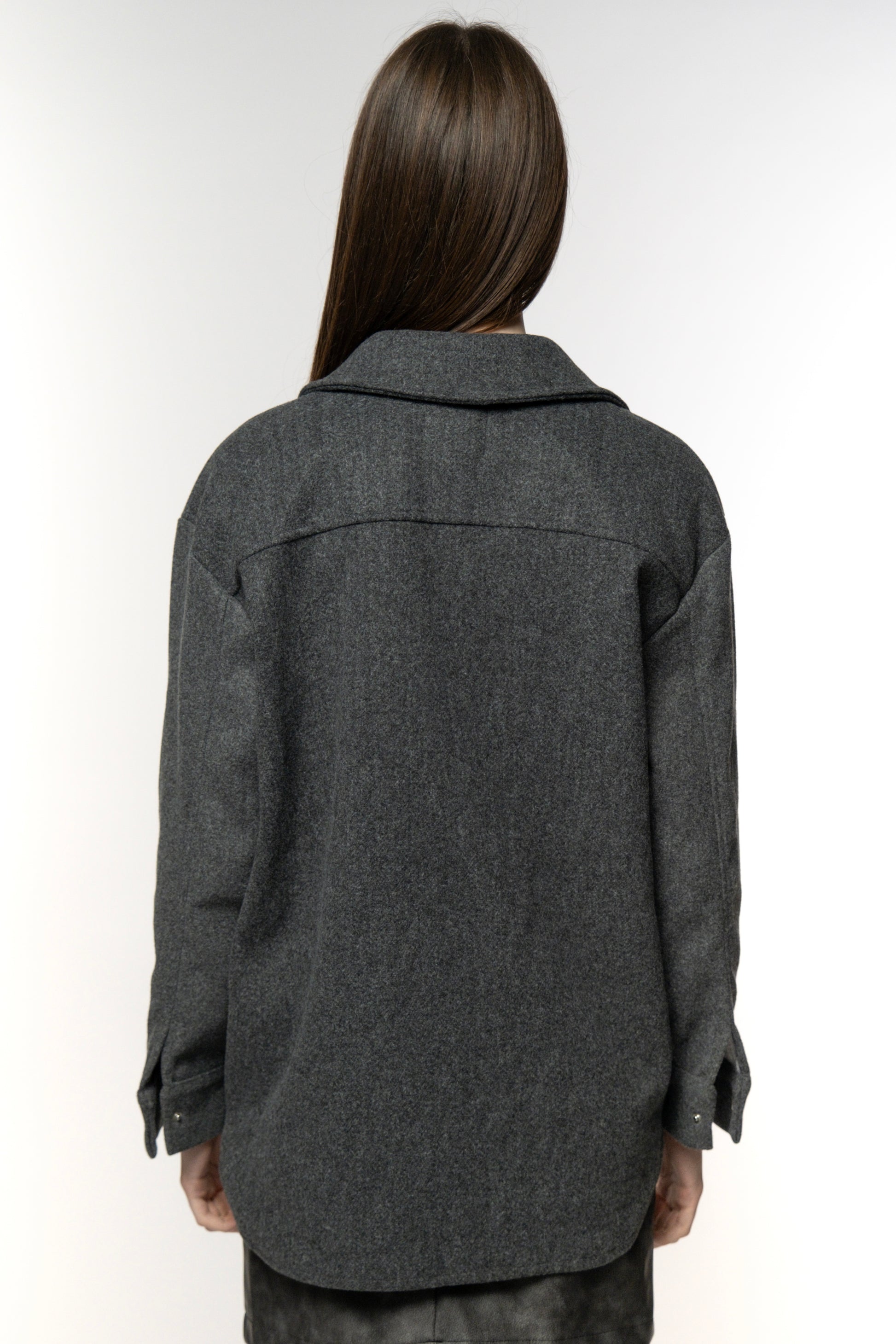 The “Charcoal Utility Shirt” brings a fresh twist to the classic shirt jacket. Made from soft, durable fabric, this piece combines the comfort of a shirt with the structure of a jacket. Featuring large front pockets and snap-button closures, it’s designed for both functionality and style. The versatile charcoal gray hue complements any wardrobe, whether layered over a simple tee or worn as a lightweight outer layer. Perfect for layering or as a standalone piece, this shirt jacket delivers a chic, utilitarian edge to your casual looks.