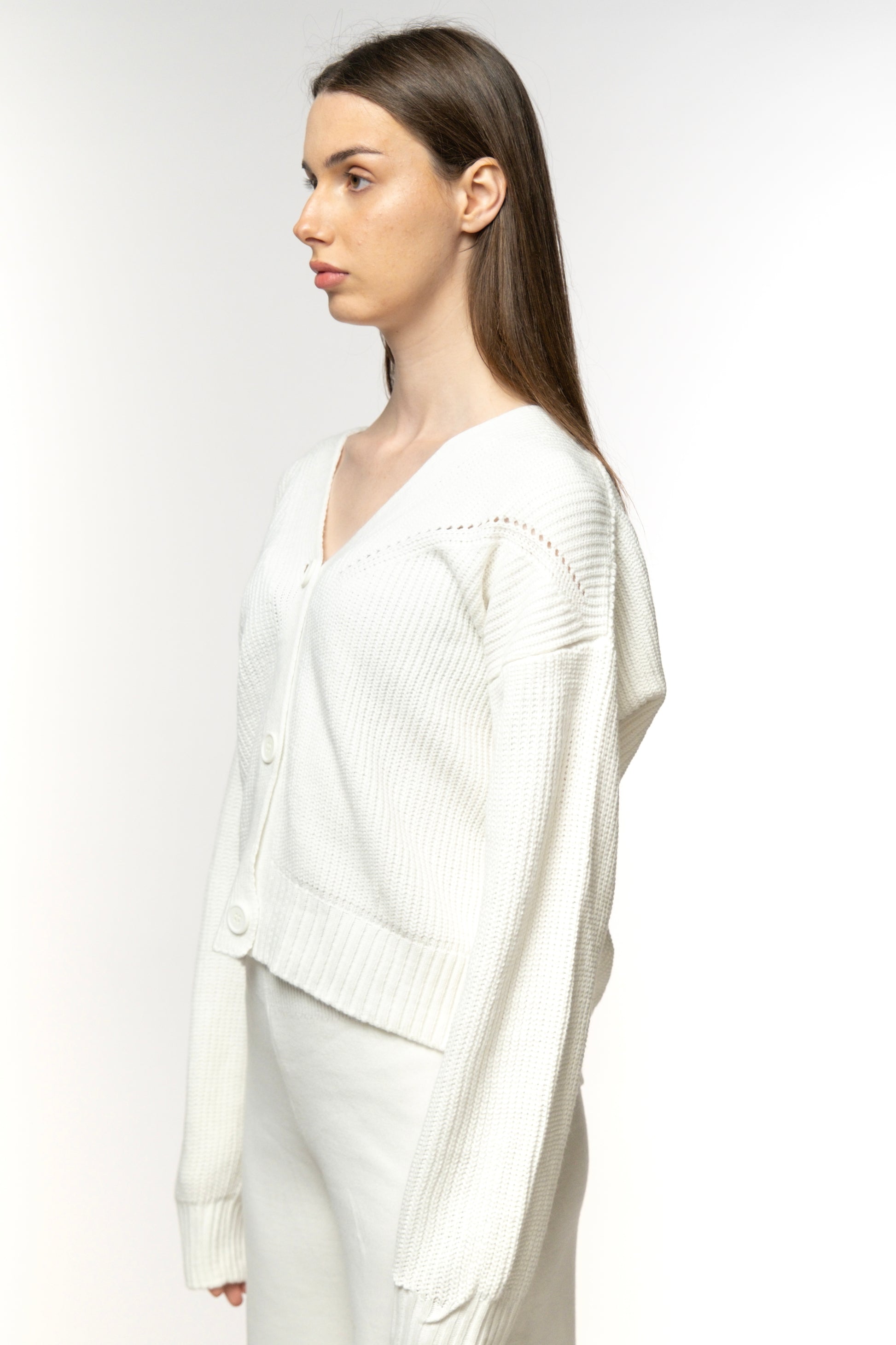 This chic White Knit Set effortlessly combines comfort and style. The soft, ribbed knit cardigan features a V-neck and relaxed fit, paired with matching high-waisted pants that offer a flattering silhouette. Crafted for ultimate comfort, this set is perfect for laid-back days or cozy evenings. Whether you're lounging at home or stepping out for casual outings, this full set provides a stylish yet comfortable option for any occasion.